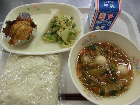 もやしラーメン・牛乳・黒糖パンケーキ・ヘルシーサラダ