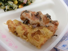竹輪の2色揚げは、カレー味とひじき入りの2色になっています