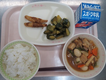 ごはん・生揚げの中華煮・キビナゴごまフライ・中華きゅうり・