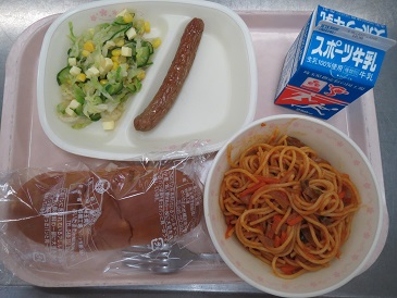 スパゲティナポリタン・焼きウインナー・温野菜ドレッシング・