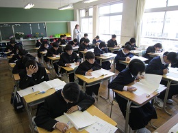 4月13日(木)埼玉県の学力学習状況調査が行われています。1年生は国語と数学、2,3年生は国語と数学と英語の調査、そして質問紙調査が行われます。どの生徒も真剣に受けていました。