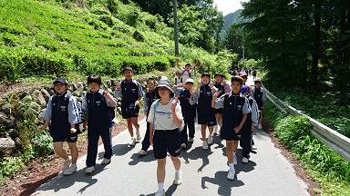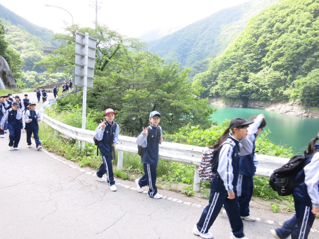6月2日(金)2年生が、自然体験宿泊学習へ出発しました。天気にも恵まれ、充実した活動が期待できますね。順調にハイキングもスタート。栃本広場でお弁当。尾根歩きを経て、いよいよ大滝元気プラザ入所式です。