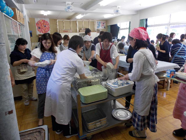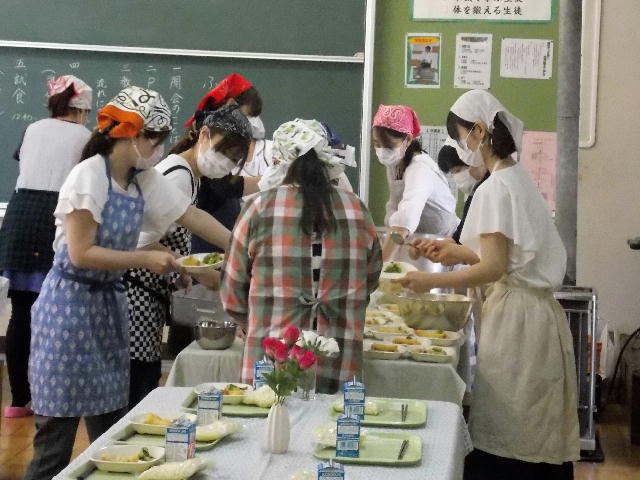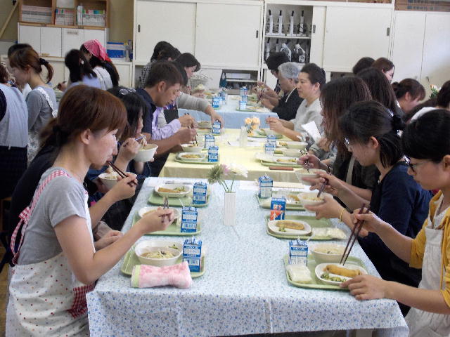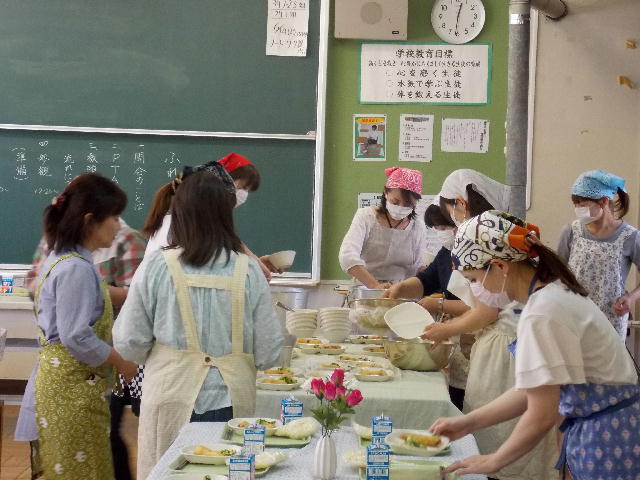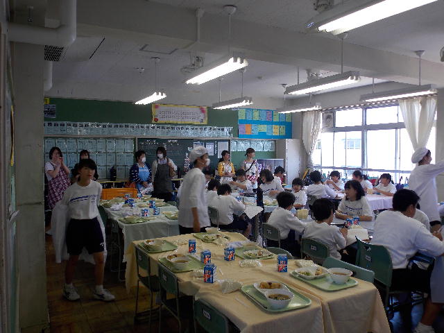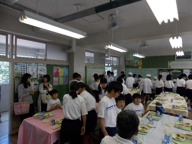 1年生の配膳の様子を参観した後、試食しました。会話も弾み楽しく、美味しくいただくことができました。片付けでは、牛乳パックをリサイクルのため開いてもらいましたが、苦戦している様子も・・・