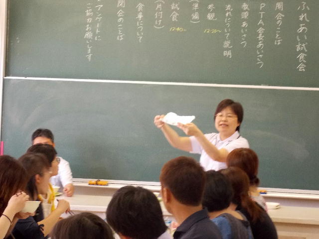 最後に栄養教諭から学校給食の目標や本校の実態について説明があり、家庭と学校が協力して食育を進めていくことでまとまりました。