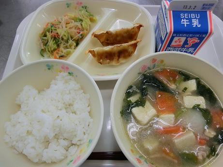 ごはん・牛乳・餃子・豆腐のスープ煮・春雨サラダ