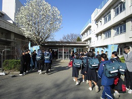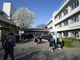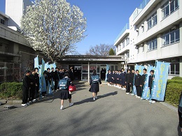 3月26日修了式の日、生徒会によるハロープロジェクトが行われました。登校してくる生徒に、元気にあいさつをして、また、元気なあいさつが返ってきました。清々しい一日のはじまりです。