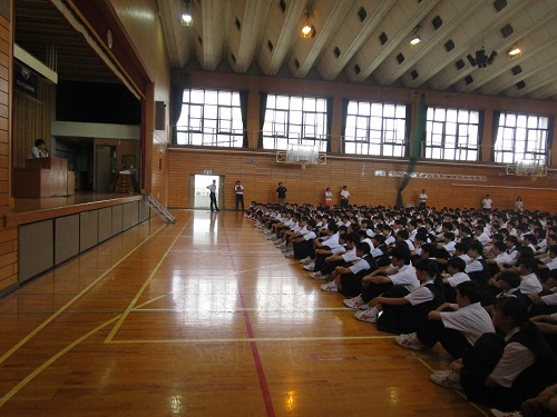6月6日の「深谷の子『6つの誓い』の日」を前に、6月3日に実施についての全校朝会を行いました。