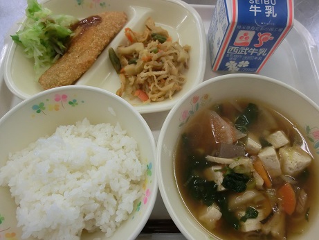 ごはん・牛乳・鮭チーズフライ・せんきゃべつ