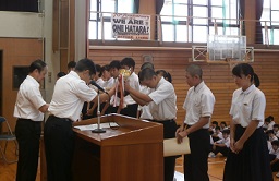 始業式に先立ち、表彰が伝達がありました。