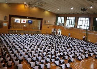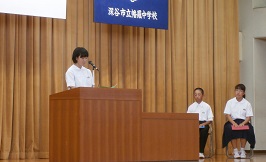 始業式では、各学年代表者から2学期の抱負が述べられました。各学年代表者に共通していることは、①学習への努力②行事を通しての学級の団結③部活動(3年生は、人としての成長について)です。力強い発表に大きな拍手が贈られていました。校長式の言葉は、2学期もWe are ONE HATARAのもとに、みんなで協力し実りある学期にしていこうというものです。