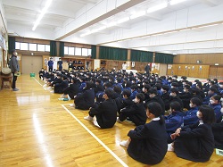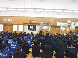 18日(金)に2年生の学年朝会が行われました。 24日(木)に実施する「校外学習」の事前指導を中心に行いました。皆、真剣な表情で 集中して話を聞いていました。 修学旅行の「班別学習」を視野に入れた取組となります。2年生として最後となる校外 行事に、期待を膨らませている様子がうかがえました。