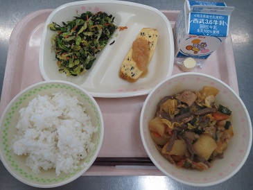ごはん・じゃが豚キムチ・ひじき入り厚焼き卵 大根おろし・