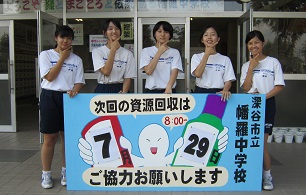 本校美術部の生徒により、念願の資源回収の看板が完成しました。 次回の資源回収は、7月29日(土)8:00~です。 今までで最高になりますよう、是非ご協力ください。皆さんの大切な資源が、幡羅中の部活動をはじめ教育を支えています。
