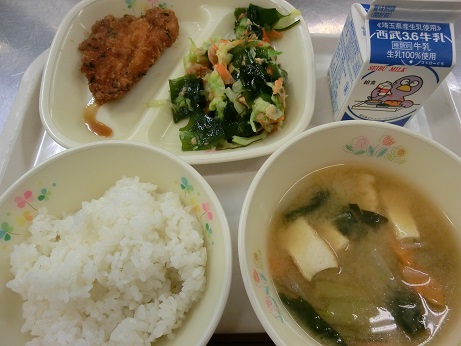 、カツ!丼・牛乳・海そうサラダ・みそ汁
