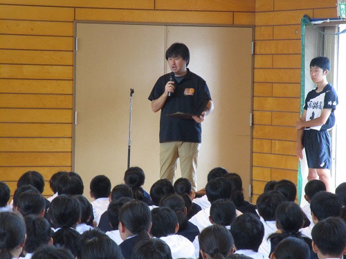 終了後には、1年生の英語の教員として着任した指物敬吾教諭の紹介と、SNS等の正しい使い方についての話がありました。
