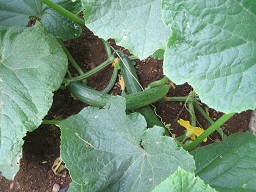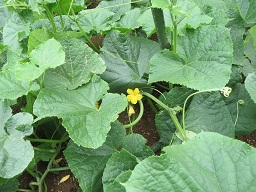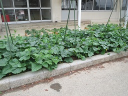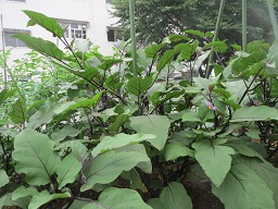幡羅中の技術室前にある農園には、夏野菜がたくさんできています。