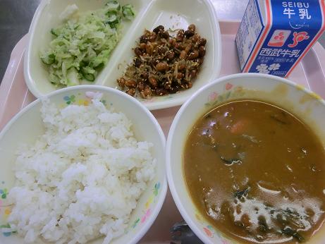 きょうは、 スピナッチカレー・牛乳・大豆の甘辛揚げ・いかの マリネでした。 きょうは、給食朝会で調理員さんの感謝の会がありました。 給食の残りがほとんどなく感謝の気持ちが伝わりました。 |