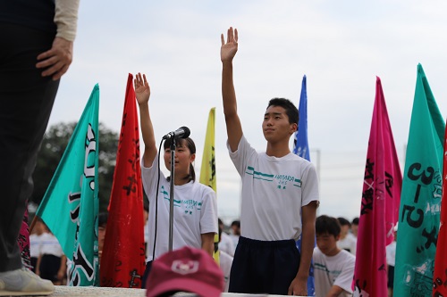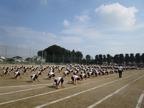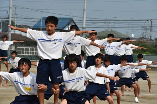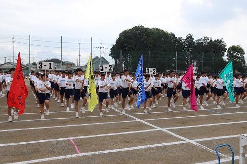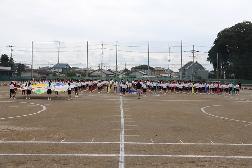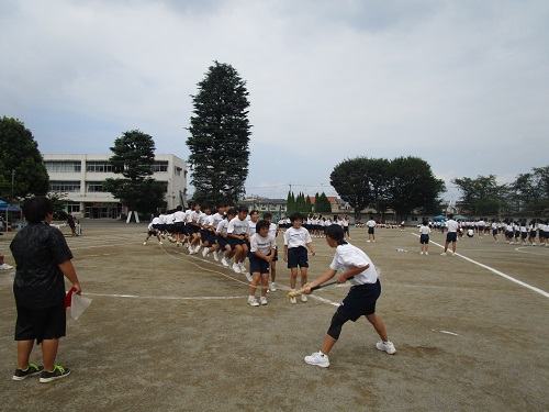 体育祭予行を行いました。開会式や各種目の入退場の動き、それに合わせた各係の動きを確認しました。