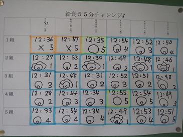 1年生は、給食開始15分後いただきますキャンペーンを実施中です