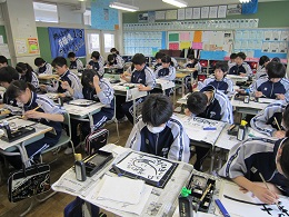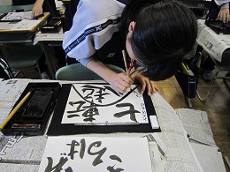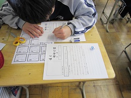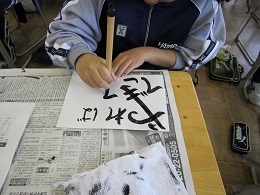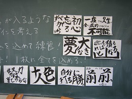 1年生では、3月17日の立志式の時に使われる「座右の銘」に取り組んでいます。どのクラスでも一生懸命に取り組んでいました。