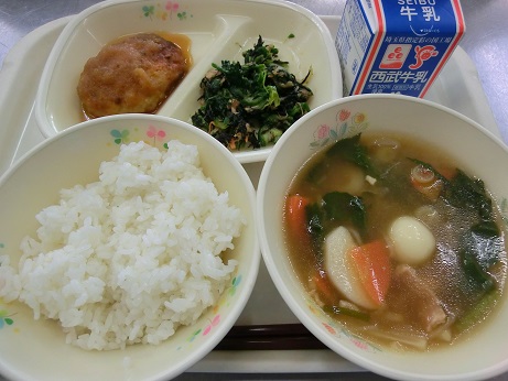 ごはん・牛乳・和風ハンバーグ・雑煮・ほうれん草