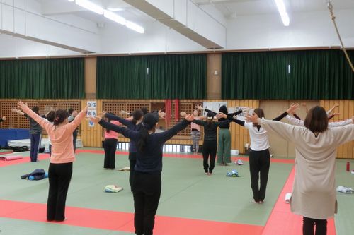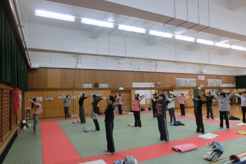 本日は第2回PTA成人教育学級が行われました。 講師に羽賀登喜子先生をお招きして「Smile Body エクササイズ」 ヨガやストレッチなどボディワーク要素を取り入れたエクササイズをしました。    |