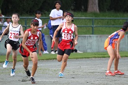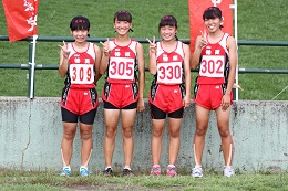女子400mRは、大差をつけての圧勝、ゴール前を風のように通過する清水 女子400mRメンバー