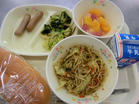 コッペパン・牛乳・ソース焼きそば・焼きウィンナー