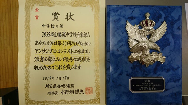 | 2019/01/19 | 音楽部 金賞受賞 | | by: 教 頭 |