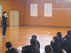 その後、全校ガイダンスを行い、給食や清掃についての注意事項を担当の教員が話しました。